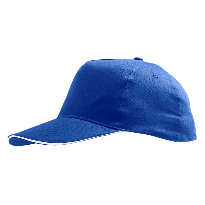 Бейсболка без шва на лбу, 5 клиньев, 4 вышитых люверса, жесткий двухцветный козырек "сэндвич", застежка-липучка.