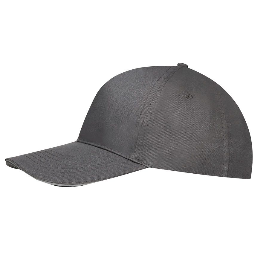 Бейсболка без шва на лбу, 5 клиньев, 4 вышитых люверса, двухцветный жесткий козырек "сэндвич" , застежка-липучка.