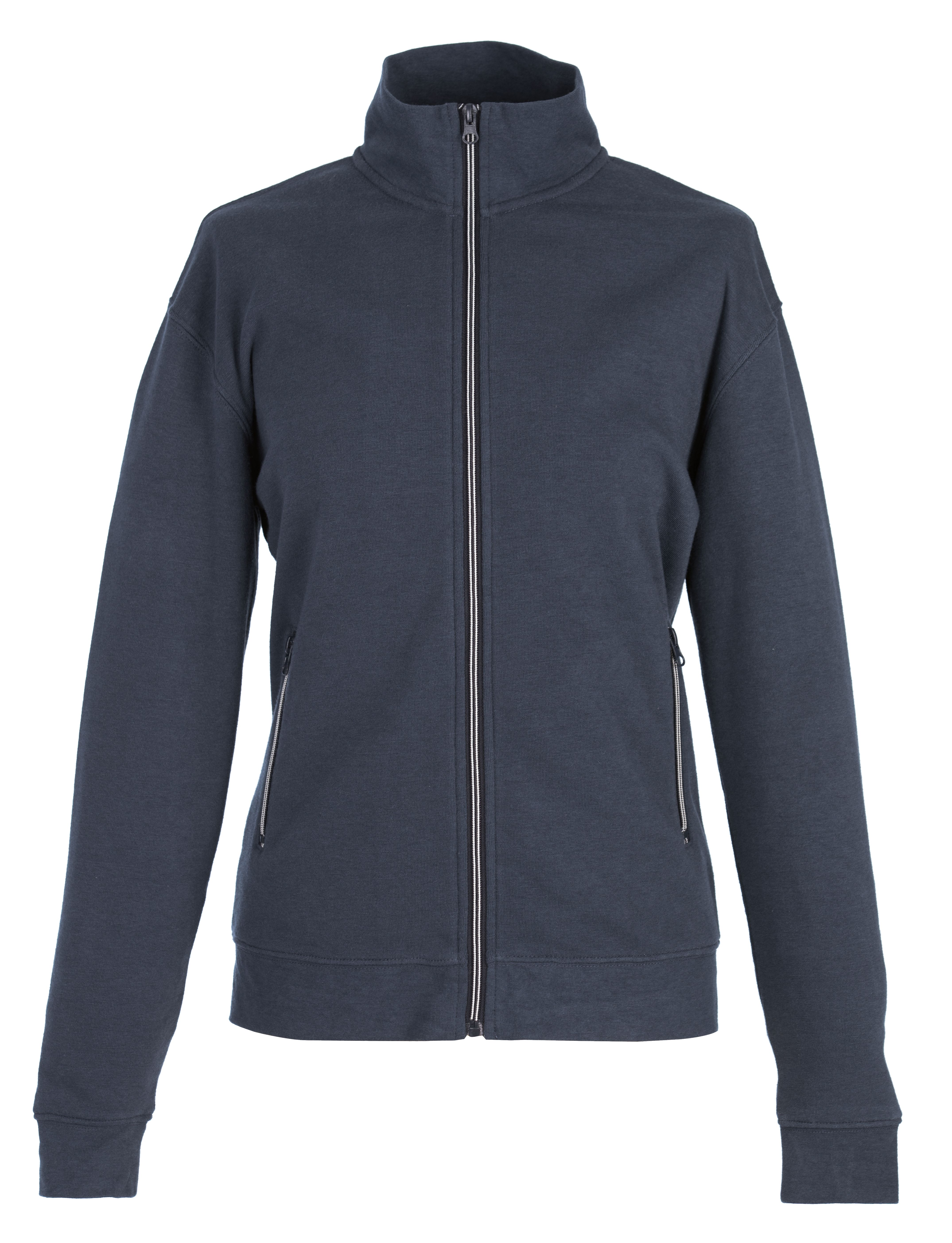 Основная ткань: цвет, близкий к Pantone 532 C Удобный воротник-стойка. Контрастная облегченная пластиковая молния. Два передних кармана на молнии. Декоративная тесьма по горловине спинки. Манжеты, воротник и низ изделия обработаны рибом 1*1.