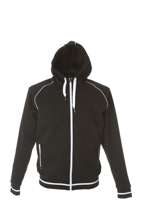 Толстовка из полотна "пике" с водоотталкивающей пропиткой. Обратные контрастные молнии для предотвращения попадания влаги внутрь. Рукава-реглан. Декоративная тесьма по горловине спинки. Капюшон на подкладке с небольшой стойкой. Контрастные канты и шнур в капюшоне. Два передних кармана на молнии. Манжеты и низ изделия обработаны плотным рибом 1*1 .