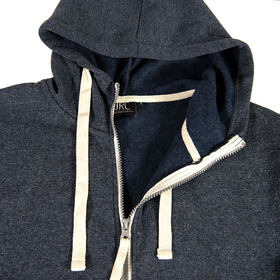Толстовка с эффектом "меланж". Облегченная пластиковая молния с контрастной тканевой лентой. Капюшон с небольшой стойкой и плоским вытяжным шнуром. Манжеты и низ изделия обработаны рибом 1*1.