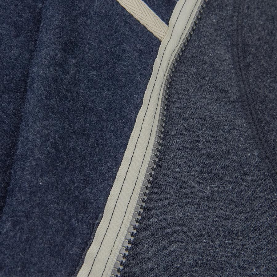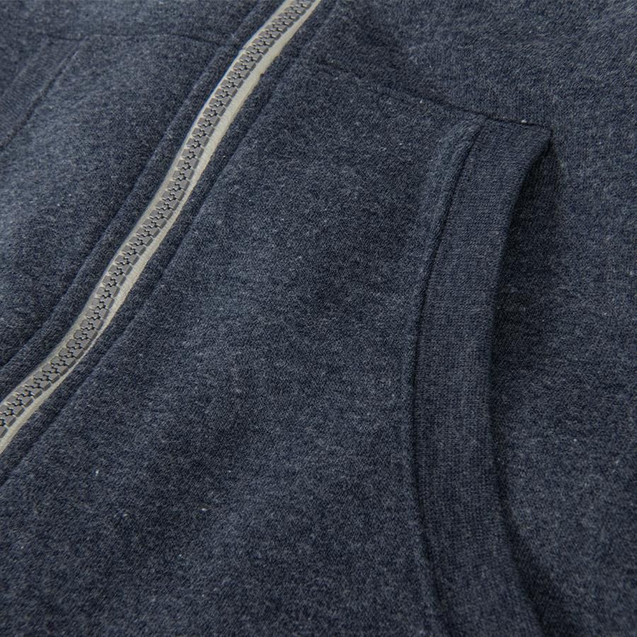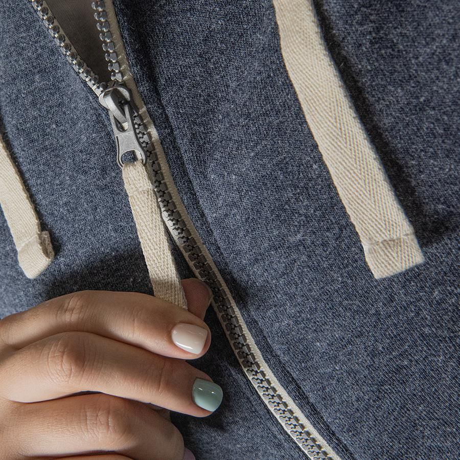 Основная ткань: цвет, близкий к Pantone 5395 U Толстовка с эффектом "меланж". Облегченная пластиковая молния с контрастной тканевой лентой. Капюшон с небольшой стойкой и плоским вытяжным шнуром. Манжеты и низ изделия обработаны рибом 1*1.