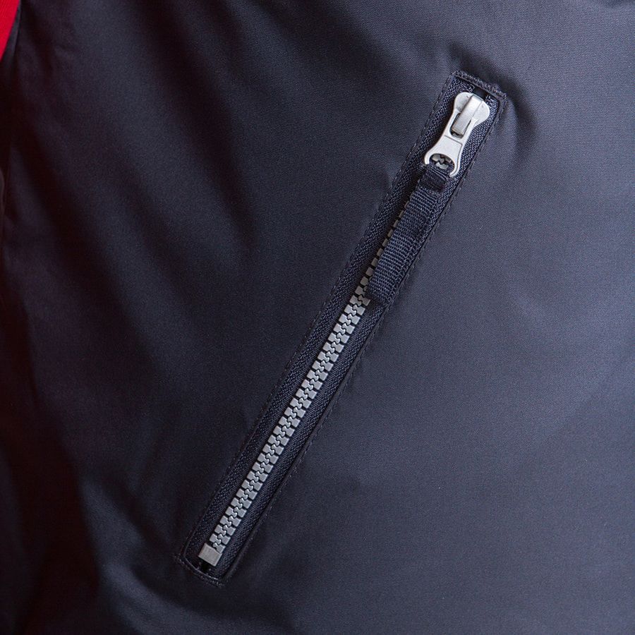 Два кармана спереди для рук, карман на груди для мобильного телефона, а также внутренний карман для бумажника.