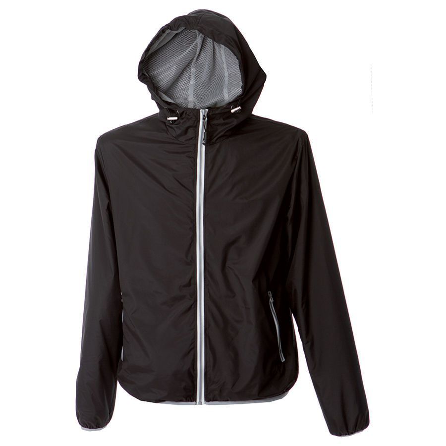 Ветровка водонепроницаемая из нейлона с «сеточкой». Два контрастных кармана на молнии и внутренний карман. Сетчатая подкладка с застежкой-молнией для легкой вышивки. Эластичная резинка по низу изделия и манжетах и регулируемые шнурки на капюшоне