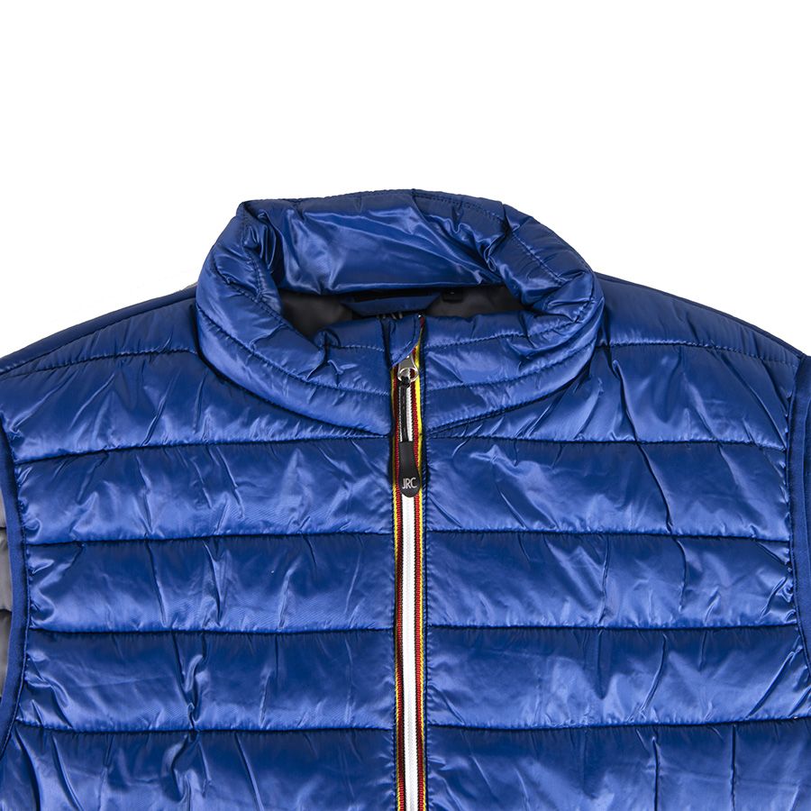 Основная ткань: цвет, близкий к Pantone Reflex Blue U, подкладка: цвет, близкий к Pantone 430 C Легкий жилет из нейлона. Небольшой воротник-стойка. Контрастная облегленная пластиковая молния со съемным пуллером. Два передних кармана на молнии. Один внутренний карман на липучке. Cтягивающая эластичная резинка по низу изделия и в рукавах.
