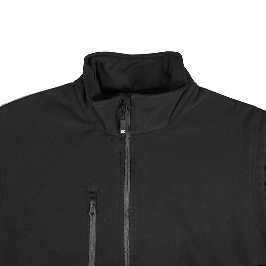 Основная ткань: цвет, близкий к Pantone 2935 U, подкладка: цвет, близкий к Pantone 660 C Двухслойная ткань softshell. Водонепроницаемый и дышащий мужской жилет. Небольшой воротник-стойка. Обратная контрастная пластиковая молния со съемным пуллером. Один нагрудный и два боковых кармана с обратной молнией. Утягивающий шнурок по низу жилета.