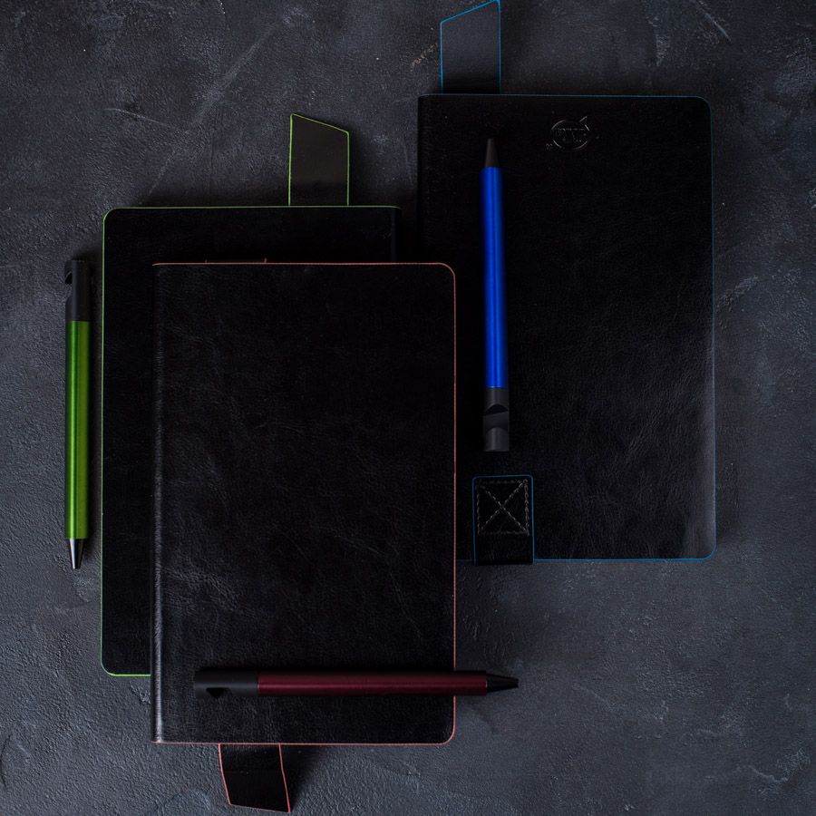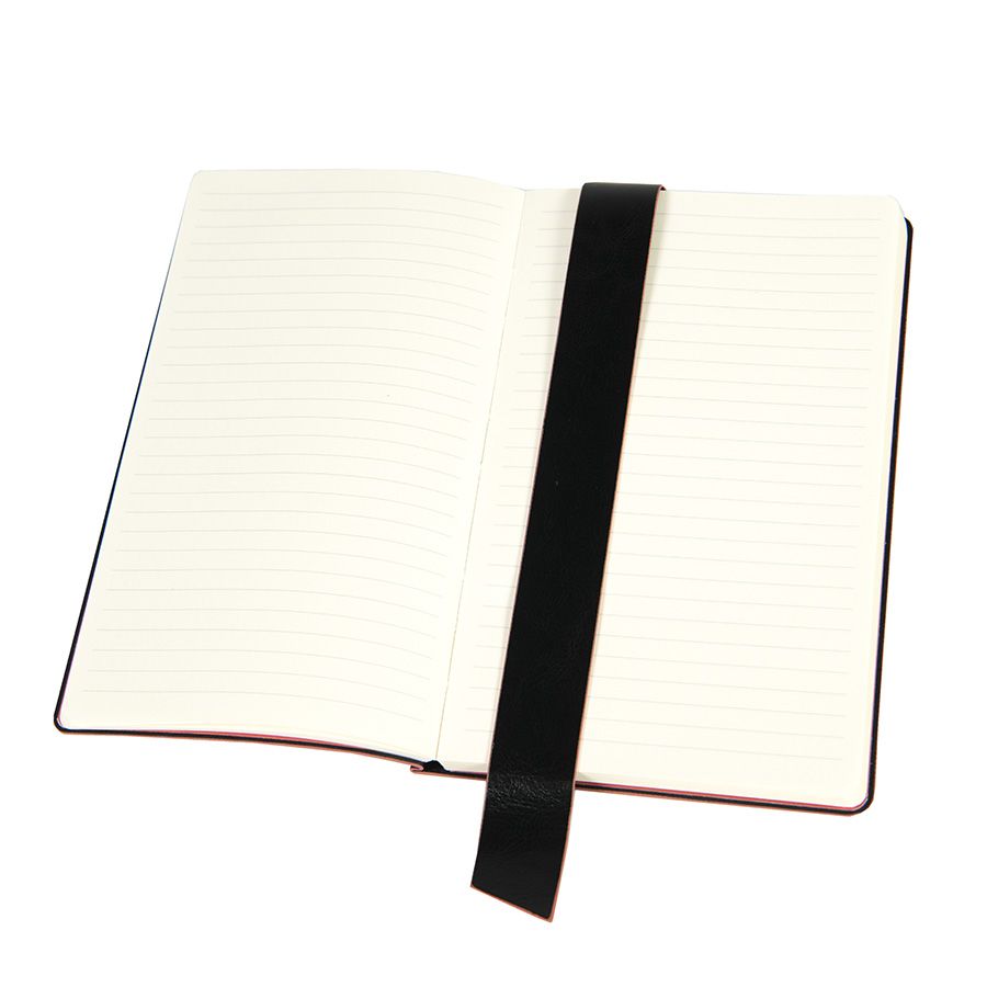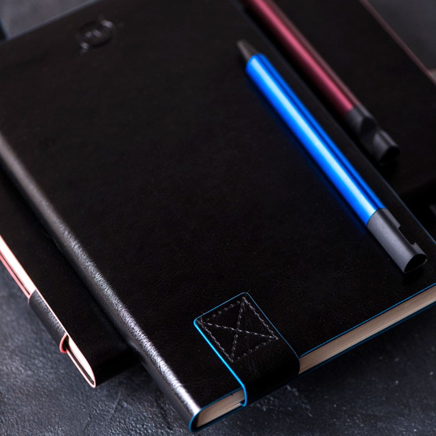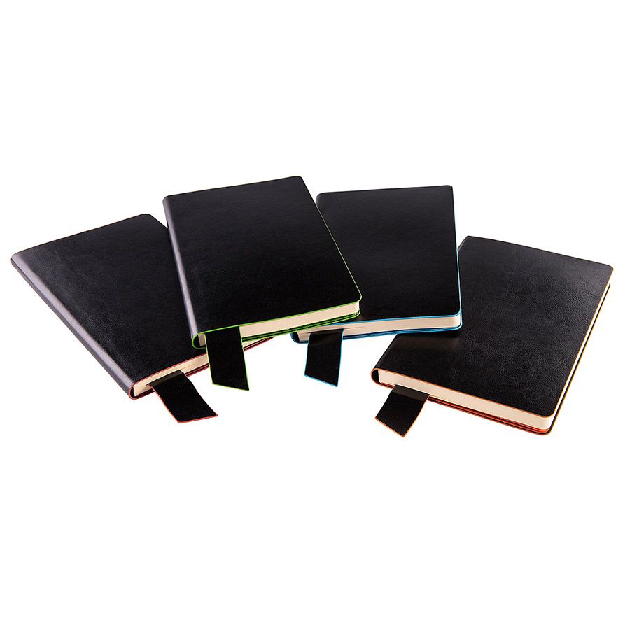 Имитирующая натуральную кожу мягкая PU обложка Bondy черного цвета по краям имеет яркую цветовую отделку.