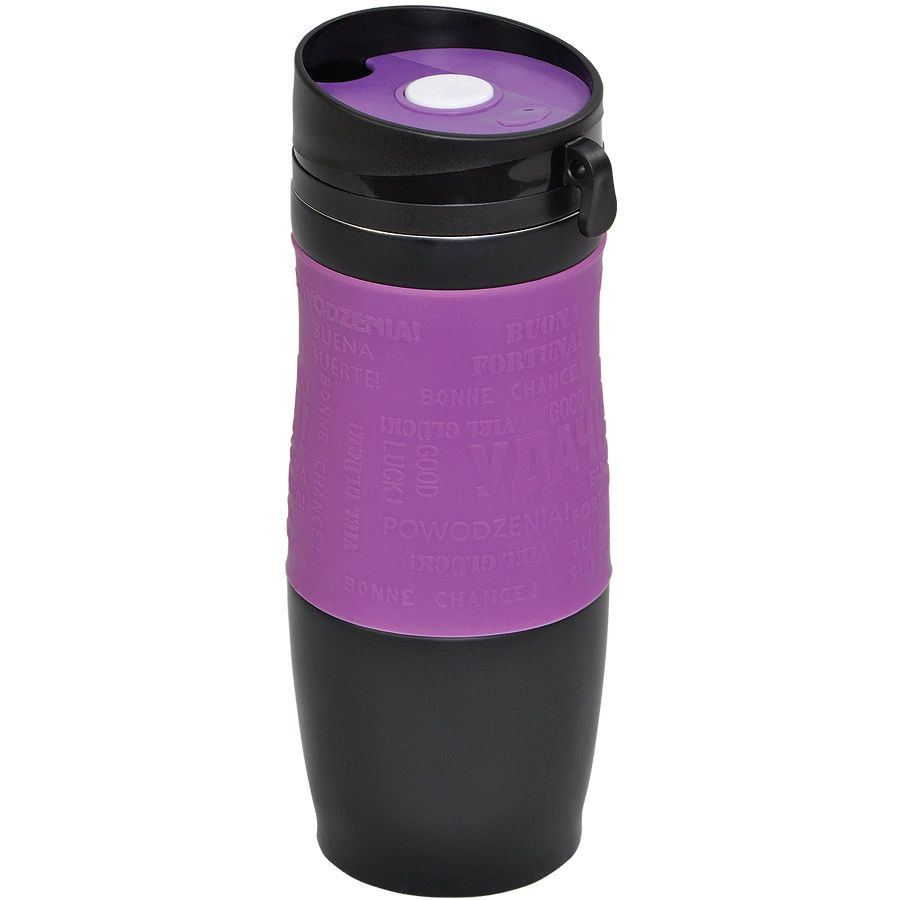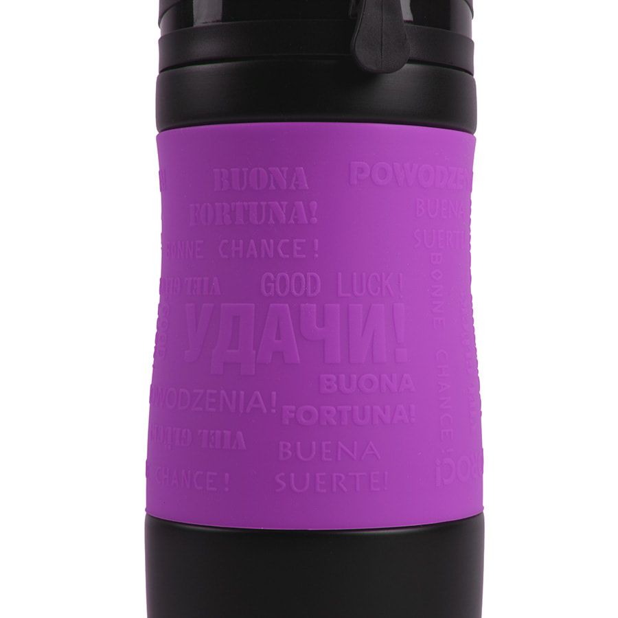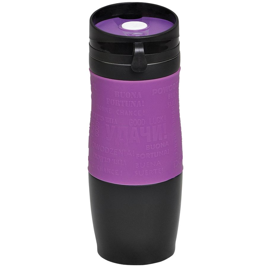 Удачи! Яркая термокружка с силиконовой манжетой. На манжете - пожелание"Удачи!" на разных языках. Pantone 2602C. Термокружки сделаны из 304 нержавеющей стали. Вы сможете сохранять ваши напитки горячими до 6 часов и холодными до 12 часов.