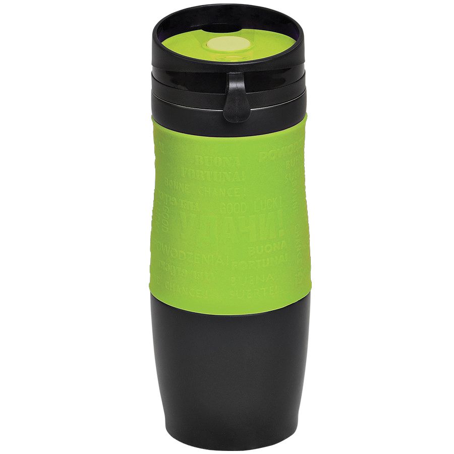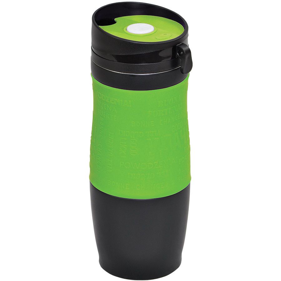 Удачи! Яркая термокружка с силиконовой манжетой. На манжете - пожелание"Удачи!" на разных языках. Pantone 374U. Термокружки сделаны из 304 нержавеющей стали. Вы сможете сохранять ваши напитки горячими до 6 часов и холодными до 12 часов.