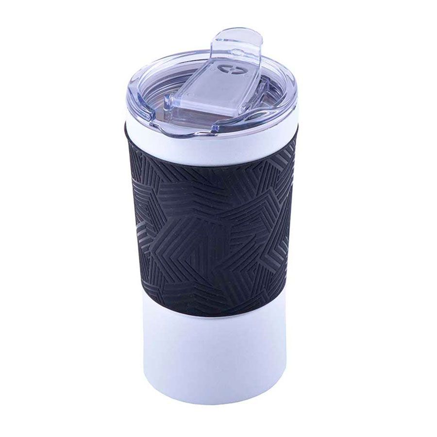 Вакуумная термокружка с покрытием "ice flower" и силиконовой манжетой.