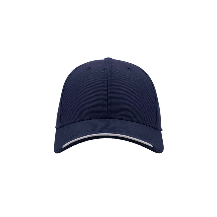 Плотная жаккардовая бейсболка ESTORIL с декоративным кантом по центру козырька.