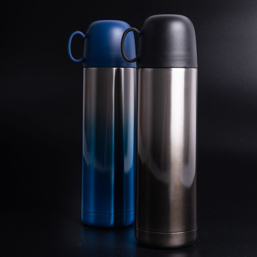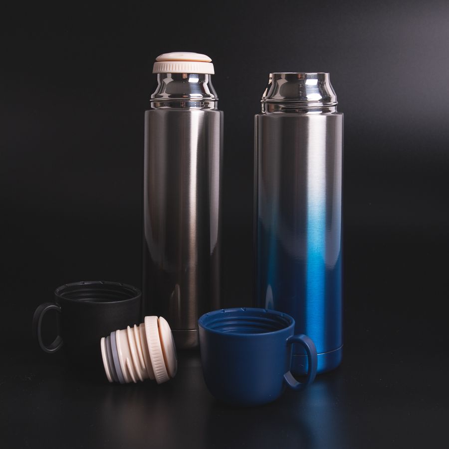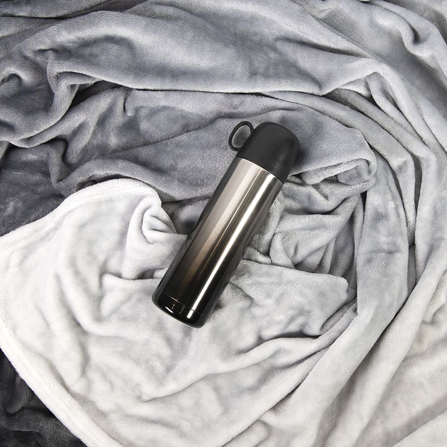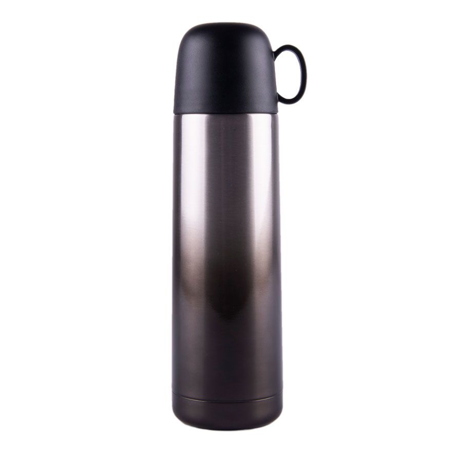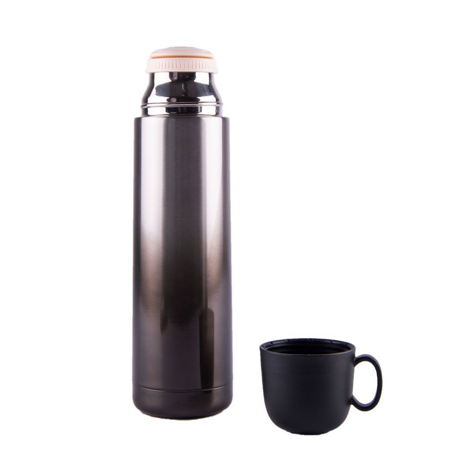 Очень удобная форма крышки-чашки. Отделка - плавный градиент из серебряного в угольно-черный цвет.