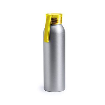 Алюминиевая бутылка с крышкой из полупрозрачного пластика.