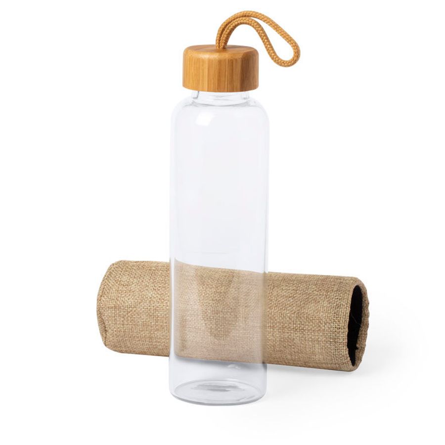 Стеклянная бутылка для воды KASFOL в элегантном ЭКО-чехле, защищающем от мелких повреждений, и навинчивающейся крышкой из бамбука. Объем 500 мл поможет с легкостью следить за поддержанием водного баланса в организме и потреблением нужного количества воды.
