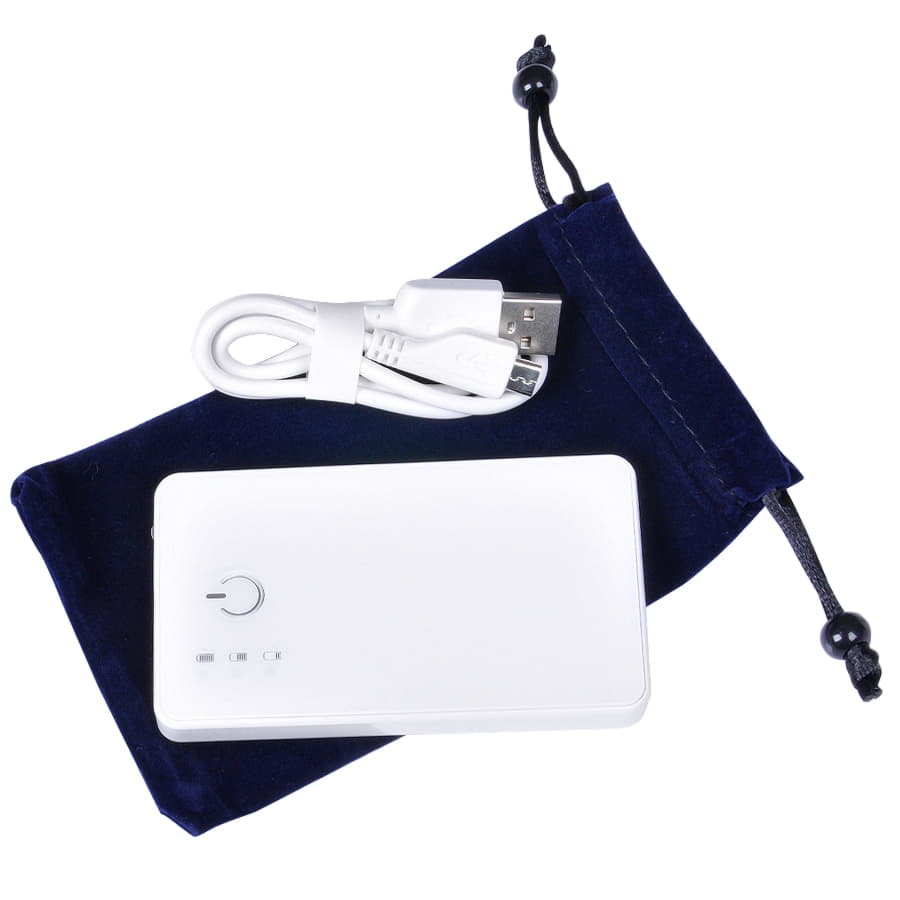 Компактный переносной аккумулятор со встроенным светодиодным фонариком. Поставляется с удобным бархатным чехлом для удобства хранения и переноски.