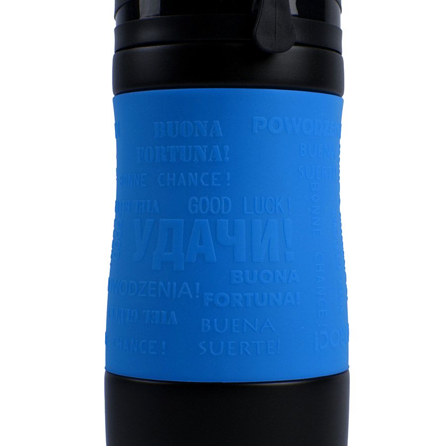 Удачи! Яркая термокружка с силиконовой манжетой. На манжете - пожелание"Удачи!" на разных языках. Pantone 300C. Термокружки сделаны из 304 нержавеющей стали. Вы сможете сохранять ваши напитки горячими до 6 часов и холодными до 12 часов.