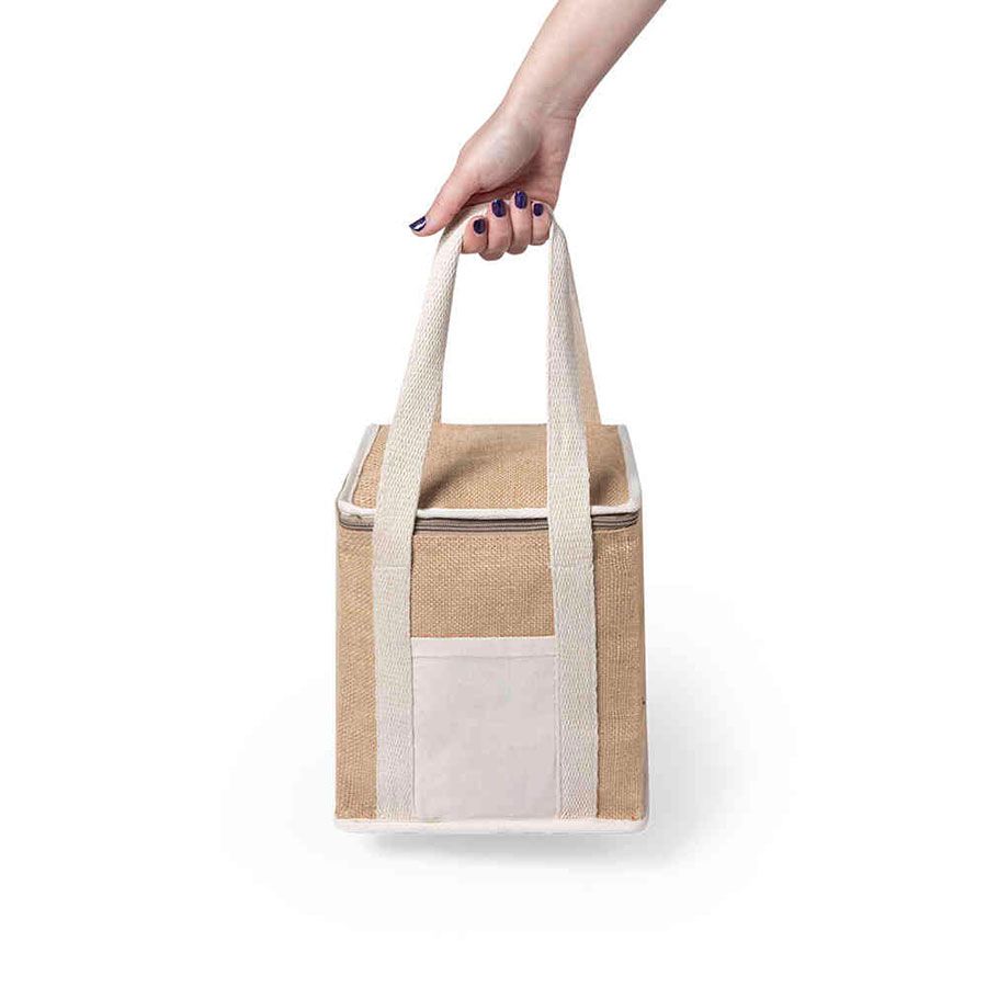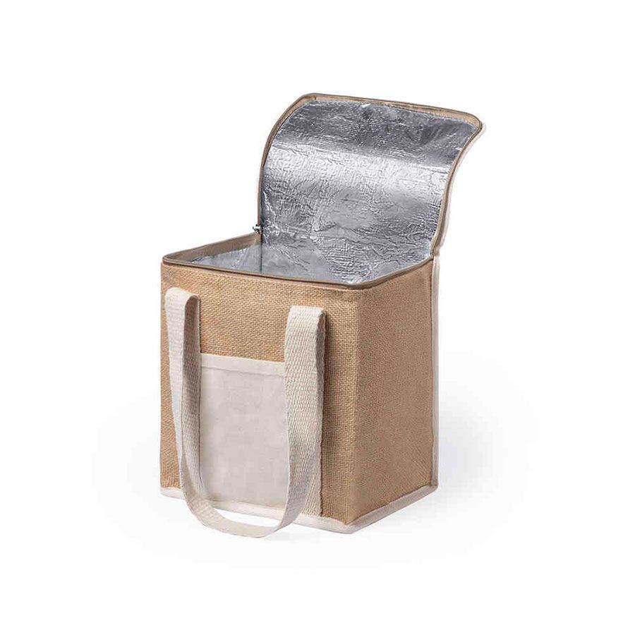 Высокая сумка-холодильник из влагостойкого ламинированного джута,