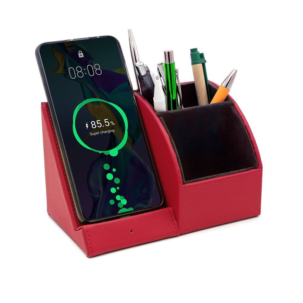 Настольный органайзер Prestige c беспроводной зарядкой и световым индикатором. Удобный инструмент для наведения порядка на рабочем месте. Цвет по PANTONE® (максимально приближен): 201C.Вход: 9V/1.67A/5V/2A USB 2.0. Выход: Беспроводная зарядка 10W. В комплекте кабель USB и инструкция.