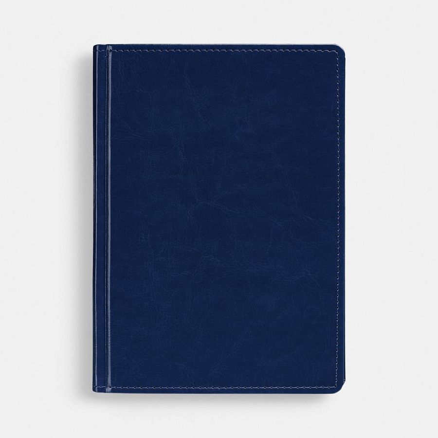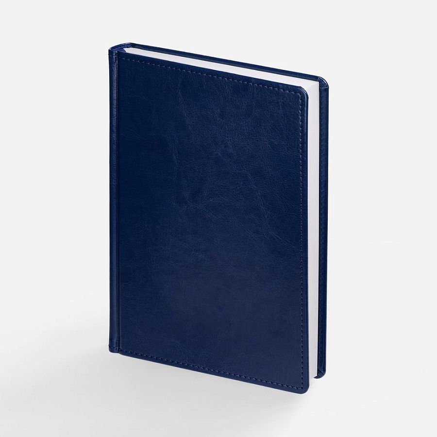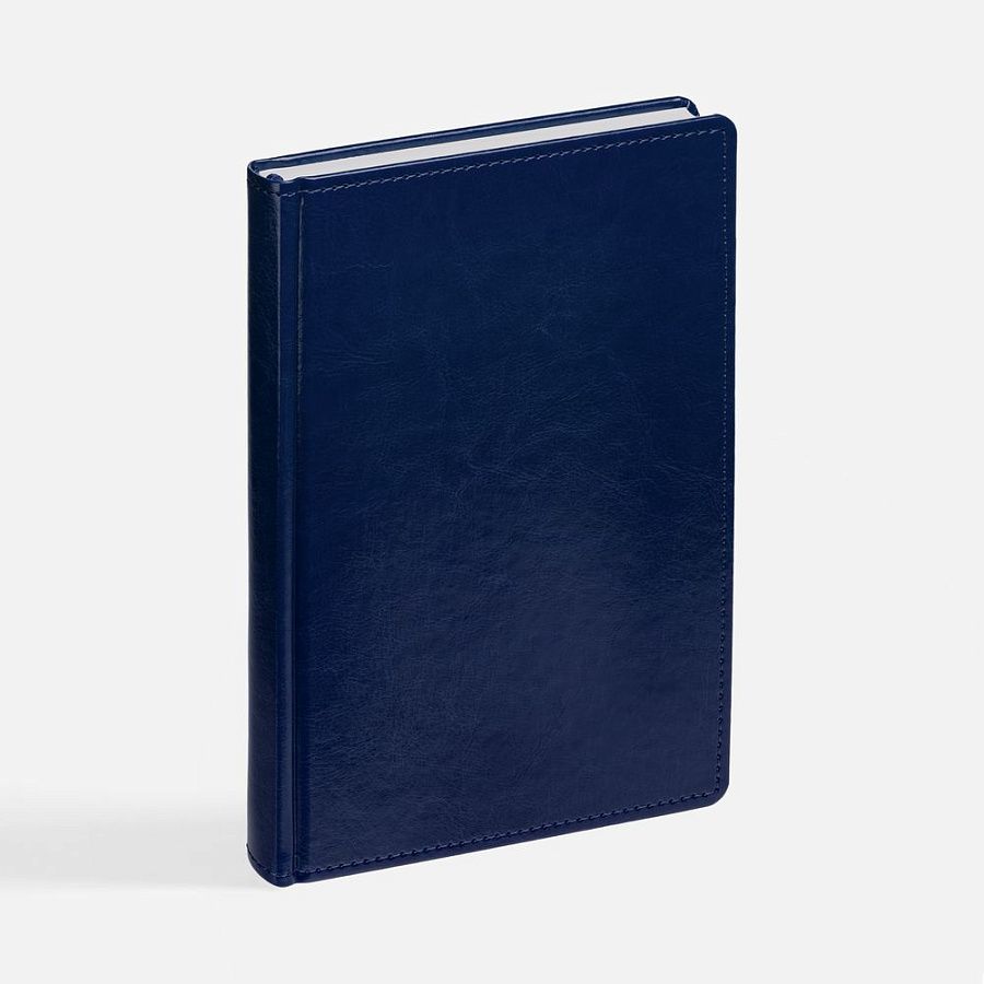 Ежедневник с твердой обложкой без поролона, выполнен из материала Nebraska, синий НН, дополнен ляссе и капталом в цвет обложки.