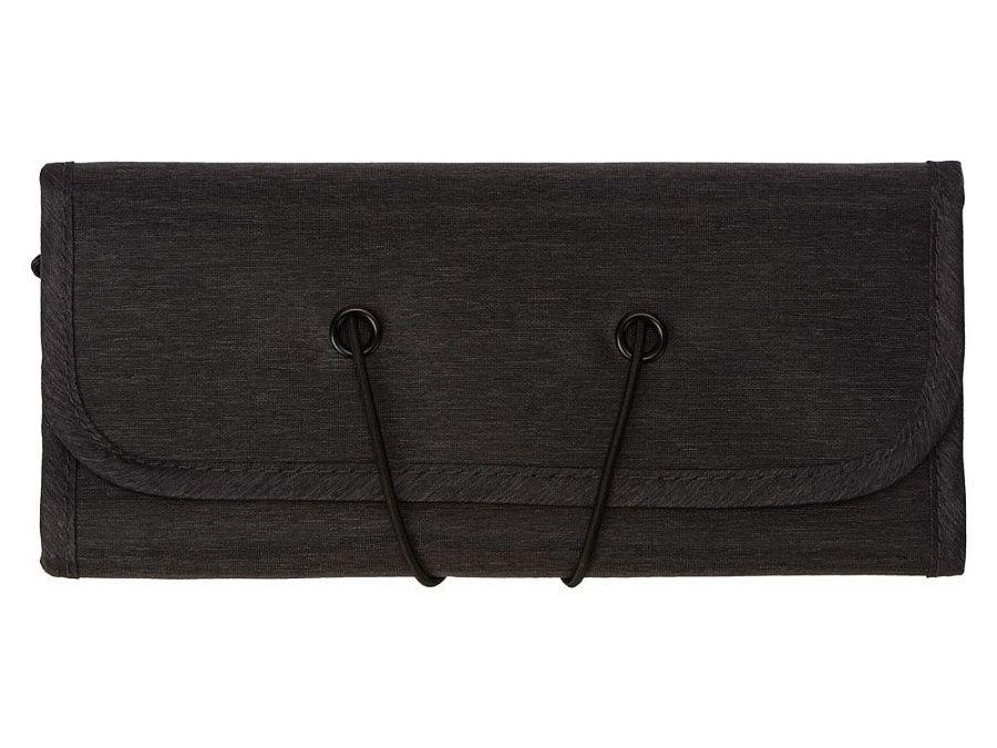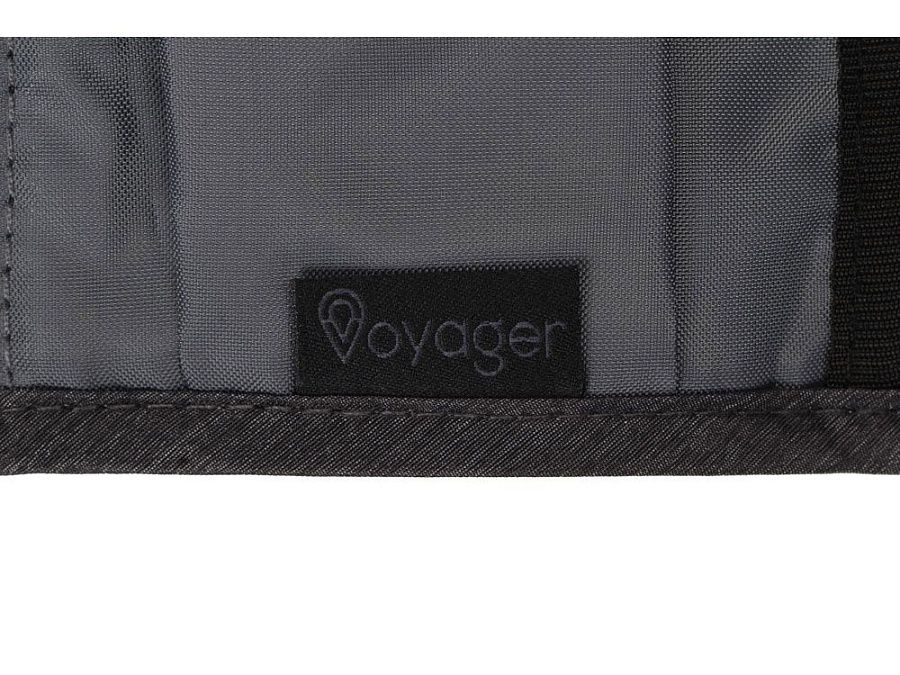 Органайзер District для электроники Voyager с множеством кармашков и отделений позволяет рассортировать девайсы, провода и другие аксессуары для техники удобным вам способом. Органайзер имеет 6 сетчатых кармашков, из них три на молнии, с бегунками, украшенными логотипом бренда. Кроме того, он имеет держатели для проводов и открытые карманы на резинке. Обложка закрывается на резинку, которая зацепляется за круглую пуговицу, и в сложенном виде органайзер весьма компактен, несмотря на свою вместительность. Благодаря форме его можно набить достаточно туго, ведь растягивающаяся резинка на обложке позволяет варьировать степень наполненности органайзера.