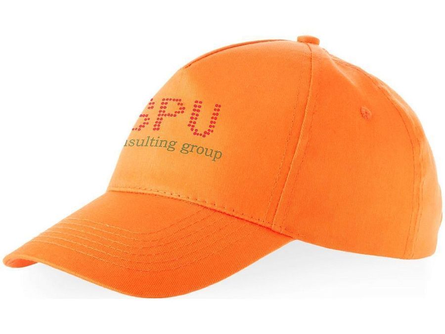 Пятипанельная бейсболка выполнена из прочного дышащего материала. Бейсболка защитит голову от палящего солнца и позволит коже дышать. Благодаря нанесенному логотипу бейсболку можно использовать как часть корпоративной атрибутики.