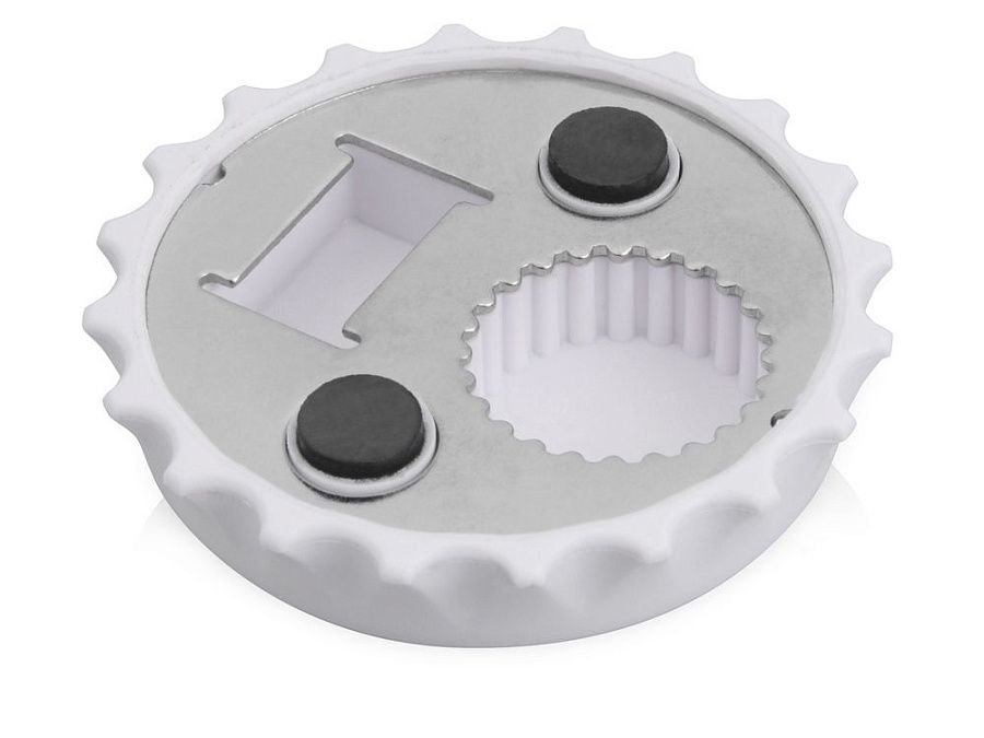 Открывалка в форме крышки – креативное и удобное приспособление. Вы никогда не потеряете ее, ведь открывалка легко крепится на холодильник двумя магнитами.