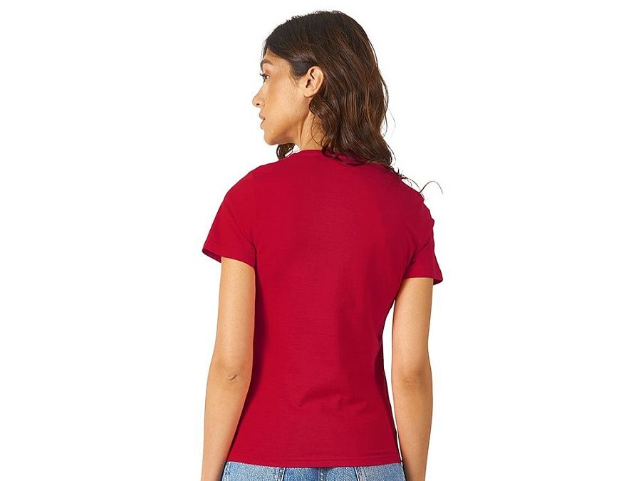Женская футболка из натурального хлопка с элегантным V-образным вырезом. Материал отлично подходит для нанесения рекламной информации. Натуральная ткань не вызывает раздражения кожи.