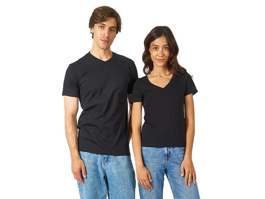Женская футболка из натурального хлопка с элегантным V-образным вырезом. Материал отлично подходит для нанесения рекламной информации. Натуральная ткань не вызывает раздражения кожи.