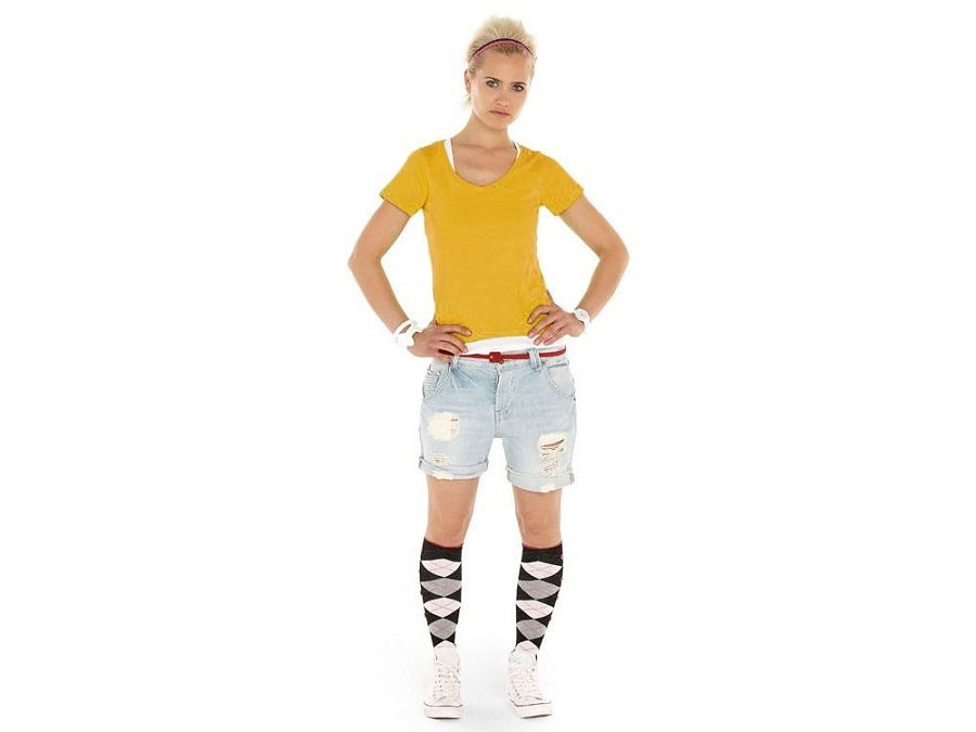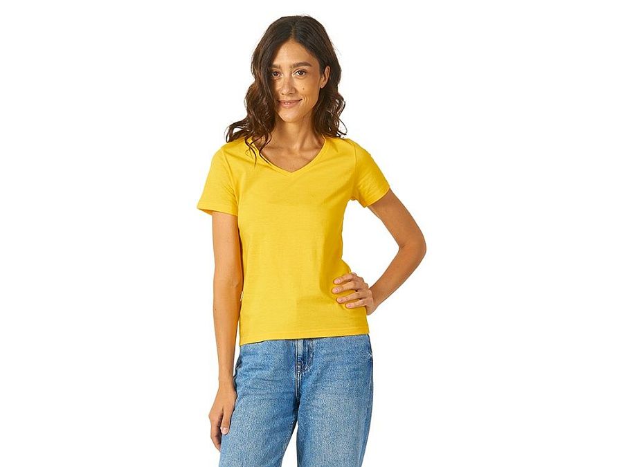 Женская футболка из натурального хлопка с элегантным V-образным вырезом. Материал отлично подходит для нанесения рекламной информации. Натуральная ткань не вызывает раздражения кожи.