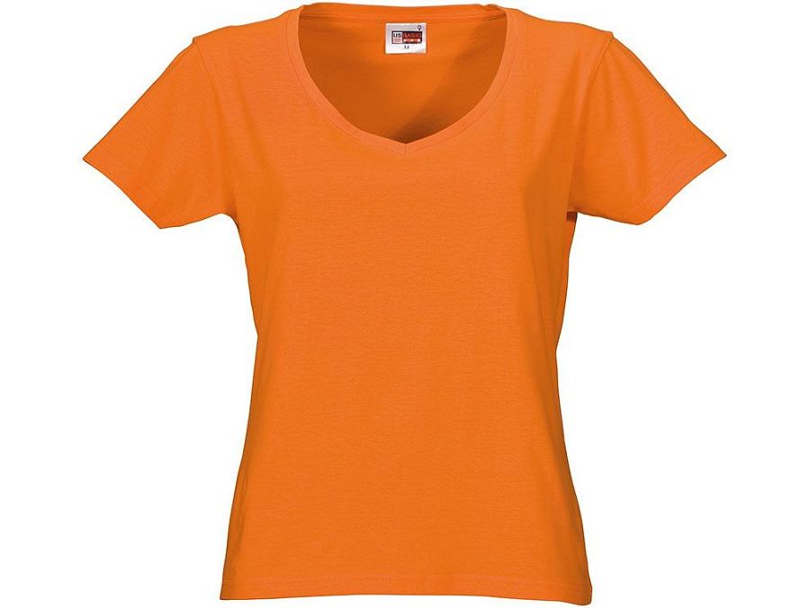 Женская футболка из натурального хлопка с элегантным V-образным вырезом. Материал отлично подходит для нанесения рекламной информации. Натуральная ткань не вызывает раздражения кожи.