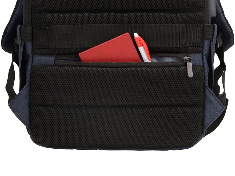 -затрудненный несанкционированный доступ к отделению для ноутбука и планшета благодаря тому, что молния смещена к спинке