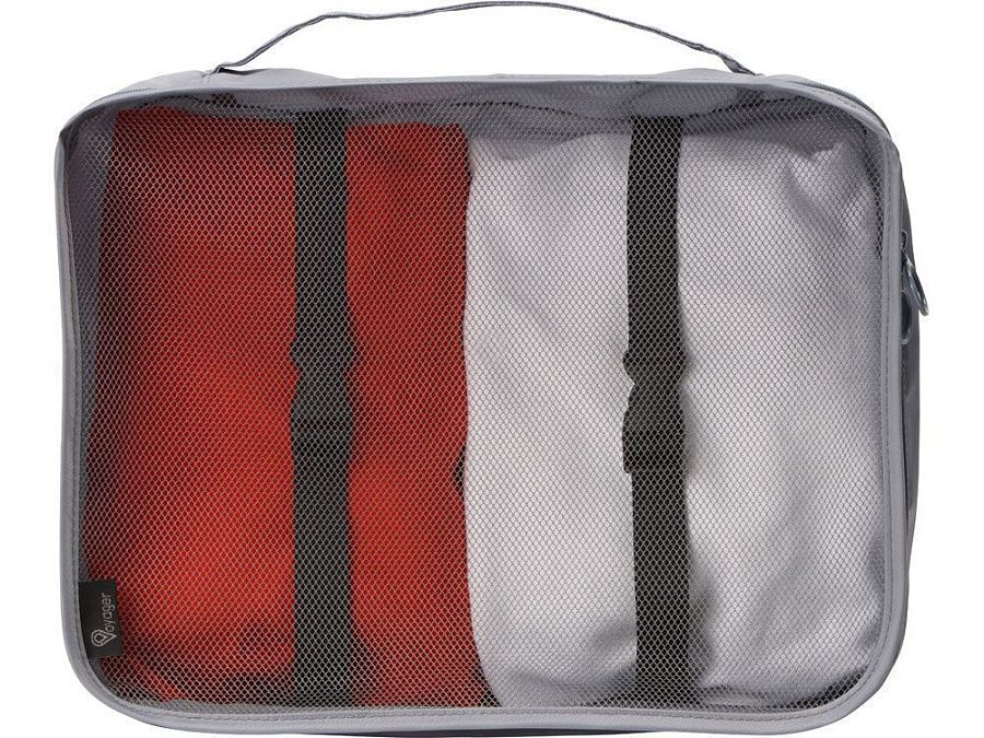 Набор чехлов для одежды от бренда Voyager, выполненный из прочного качественного полиэстера 290D, организует ваши вещи в чемодане во время путешествия и поможет разместить их комфортно в шкафу. В отличие от пакетов чехлы многоразовые, что наверняка понравится защитникам природы, их легко стирать, сушить и хранить. Набор состоит из восьми чехлов, упакованных в один большой с сетчатой стенкой. Этот чехол оборудован ручкой для переноски и кнопками на задней стенке, которые позволяют компактно сложить изделие вдвое в зафиксированном положении для хранения.