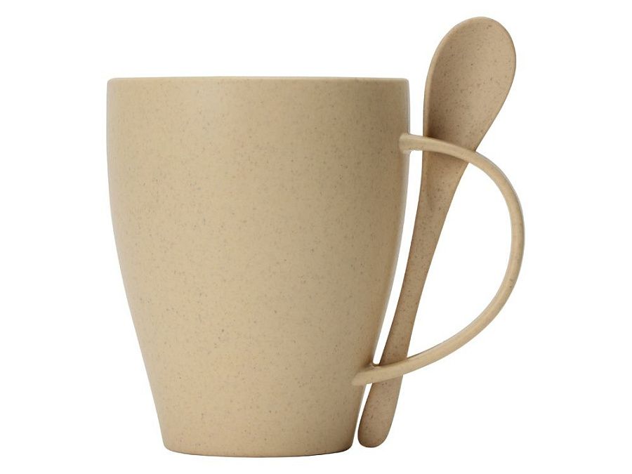 Кружка «Nina» состоит из смеси ПП-пластика (50%) и переработанной пшеницы (50%), что делает ее настоящим экомерчем. Поверхность кружки имеет приятный бежевый оттенок с небольшими вкраплениями-точками темно-серого цвета, которые только подчеркивают природное происхождение «Nina».