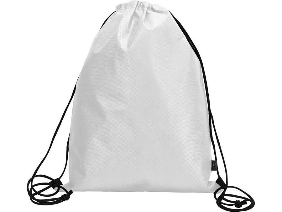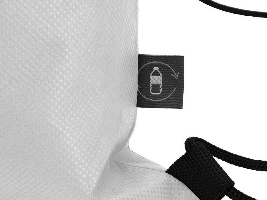 Рюкзак-мешок изготовлен из переработанного пластика. Затягивается с помощью двух боковых шнурков.
