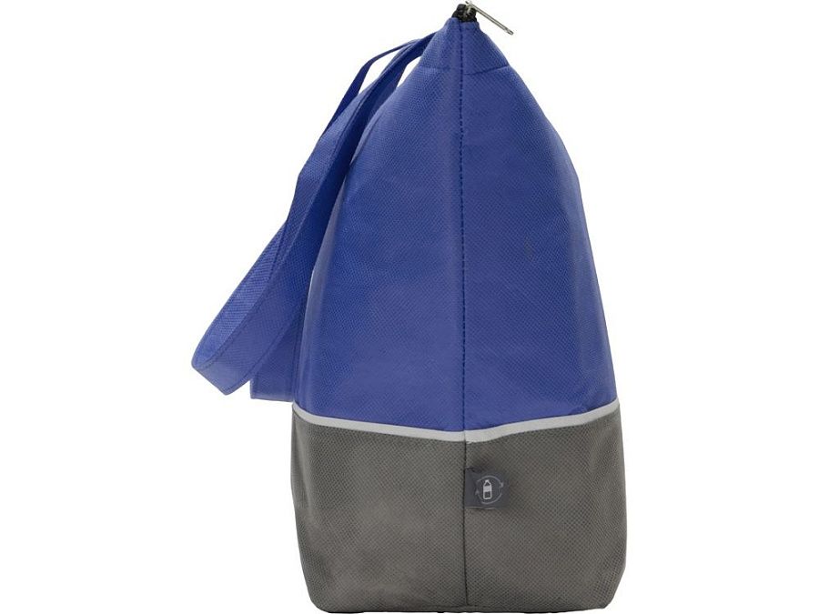 Вместительная сумка-холодильник из переработанного пластика. Удобные длинные ручки для ношения на плече. Застегивается на молнию.