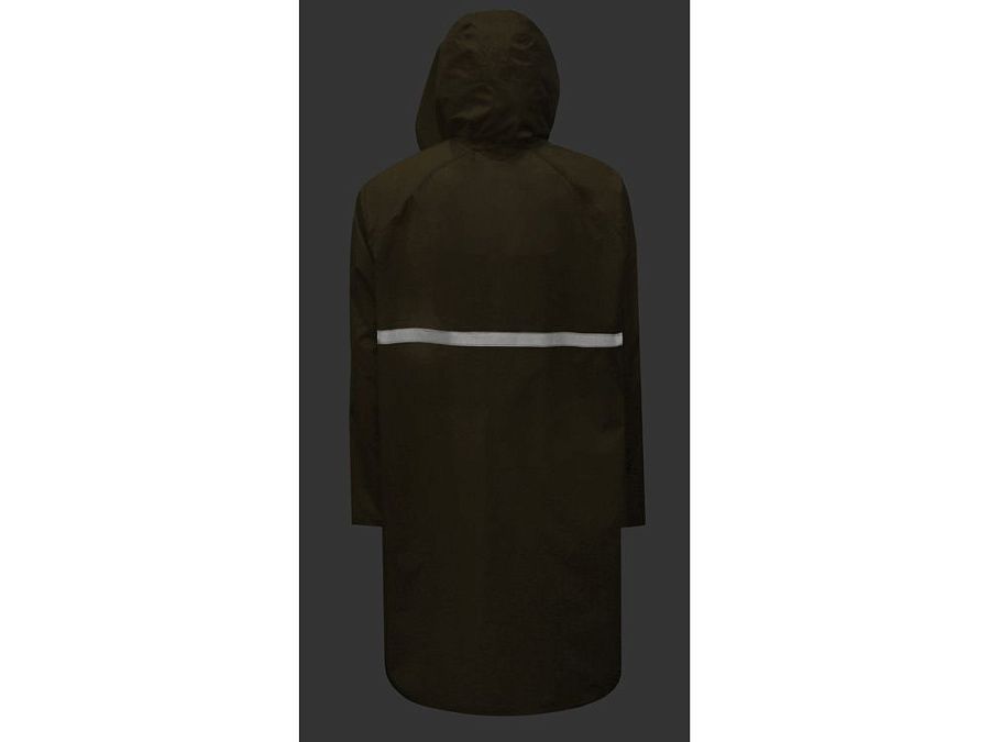 Светоотражающая тесьма на груди и спине делает человека в плаще заметным даже в темное время суток. Вместительные накладные карманы защищены сверху клапаном.