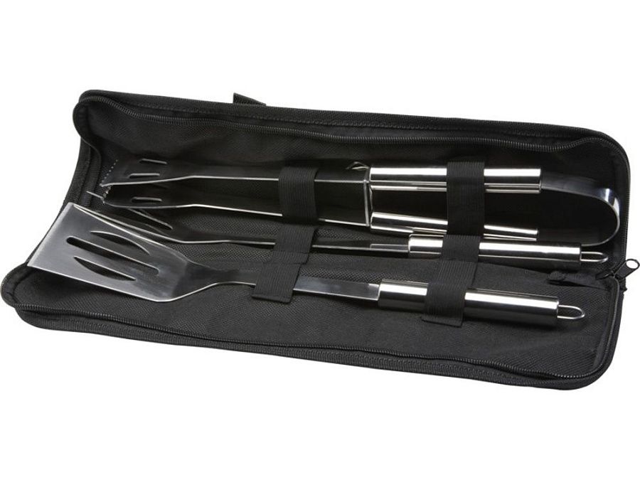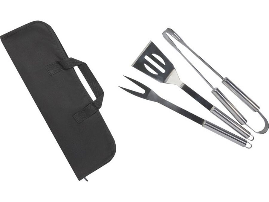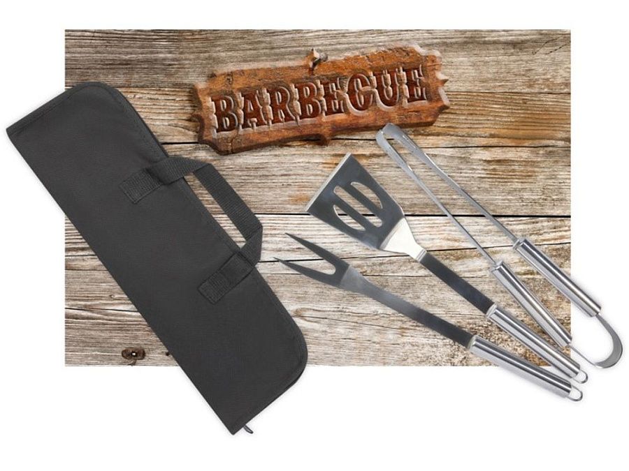 Набор для барбекю из 3 предметов: лопатка (34,8 x 7,5 см), вилка (35,4 x 3,35 см) и щипцы (35 x 6,8 x 4 см). Все аксессуары поставляются в легком футляре для удобства переноски и хранения. Идеальный аксессуар для барбекю в саду или для того, чтобы взять с собой для приготовления еды на гриле на открытом воздухе с друзьями и семьей.