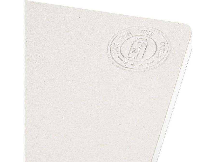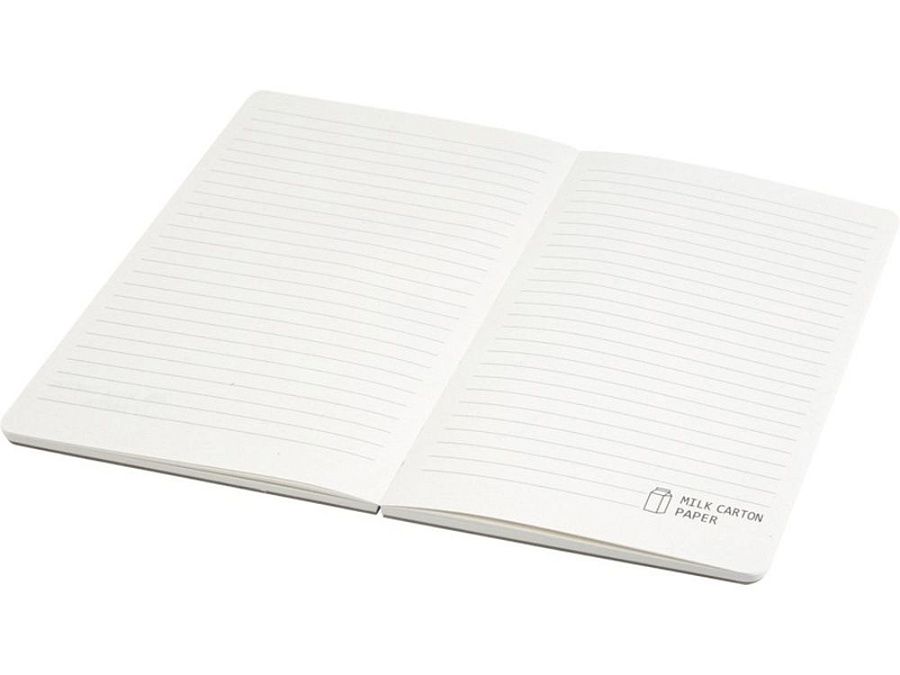 Мягкий блокнот для заметок форматом A5 с 80 линованными листами плотностью 80 г/м² из переработанных картонных коробок из-под молока (до 70%). Картонные коробки из-под молока собираются, сортируются, перерабатываются и превращаются в бумагу, таким образом действительно превращая мусор во что-то полезное.