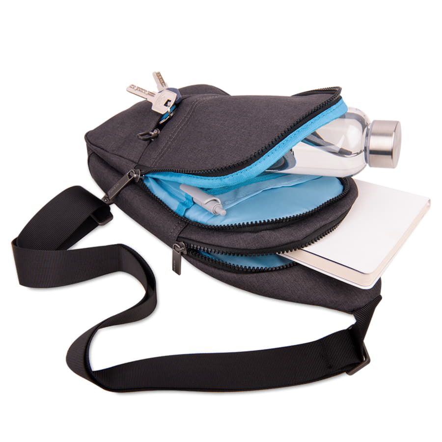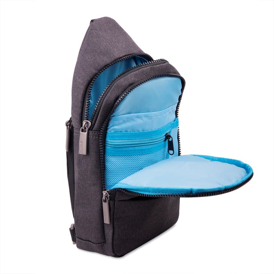 Два больших основных глубоких отделения с мелкими отделениями для мелочейКарман с RFID-защитой на молнии со стороны спинки для размещения самых ценных предметовНебольшой внешний карман на лицевой стороне на молнии со стильнымпластиково-металическим пуллеромКачественная регулируемая лямка с карабином и двумя кольцами внизу спинки