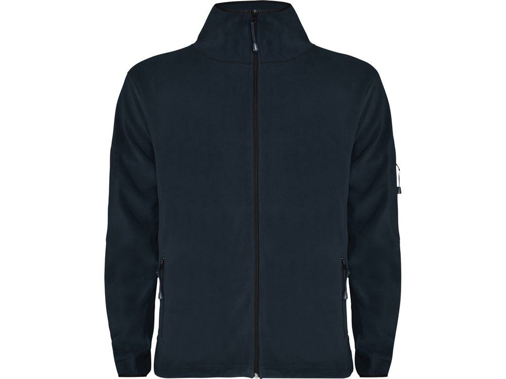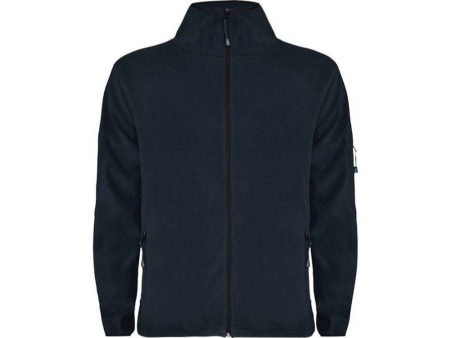 Куртка из микрофлиса с высоким воротом. Контрастная центральная молния, боковые карманы на молнии, декоративная молния на левом рукаве, отделка резинкой по краю рукавов. Налокотники из основного материала.