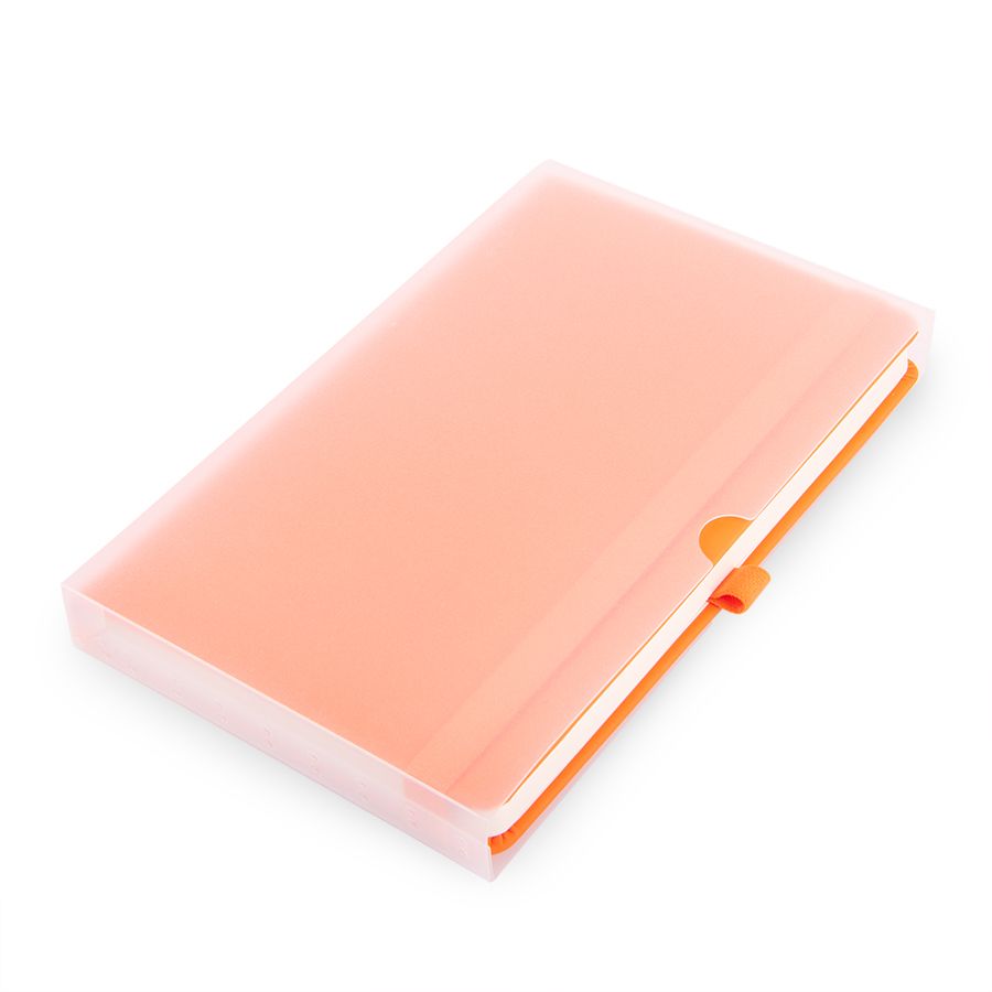 Самый популярный блокнот в твердой обложке, с эластичной резинкой, пенхолдером и ляссе в тон.