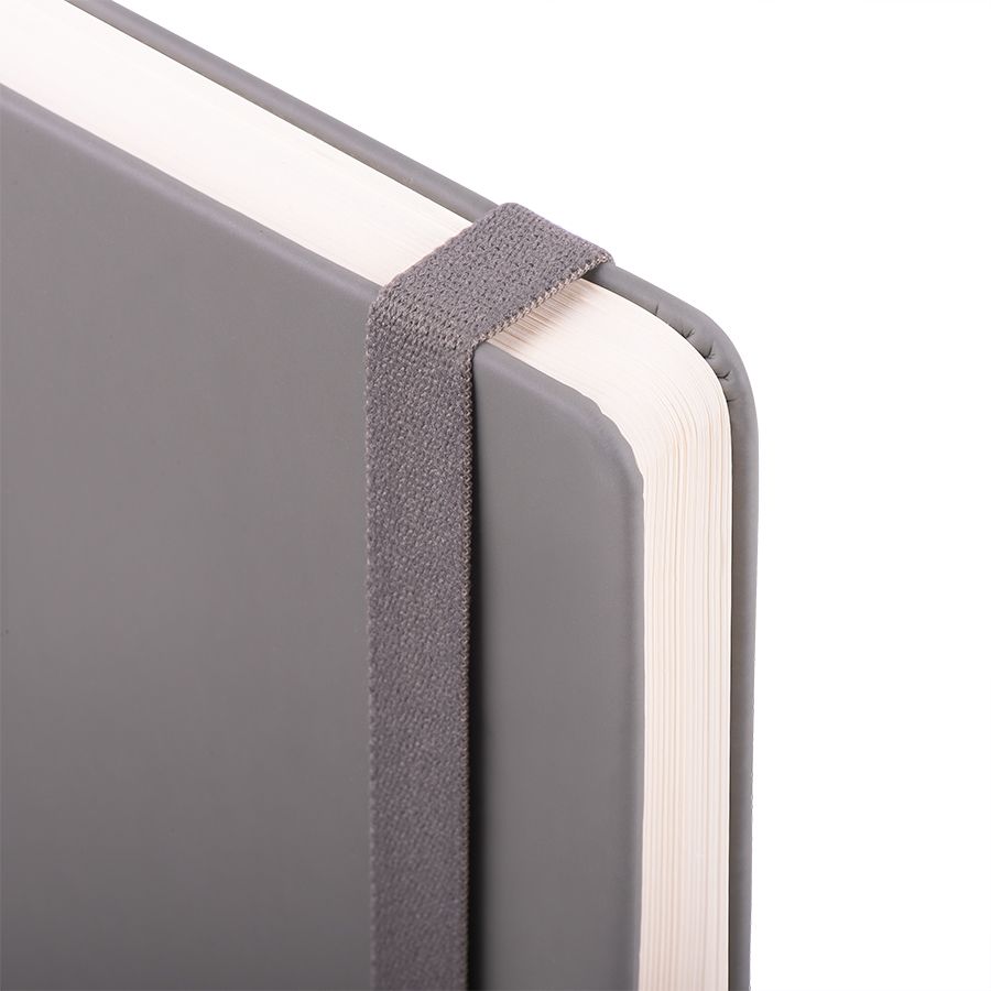 Самый популярный блокнот в твердой обложке, с эластичной резинкой, пенхолдером и ляссе в тон.