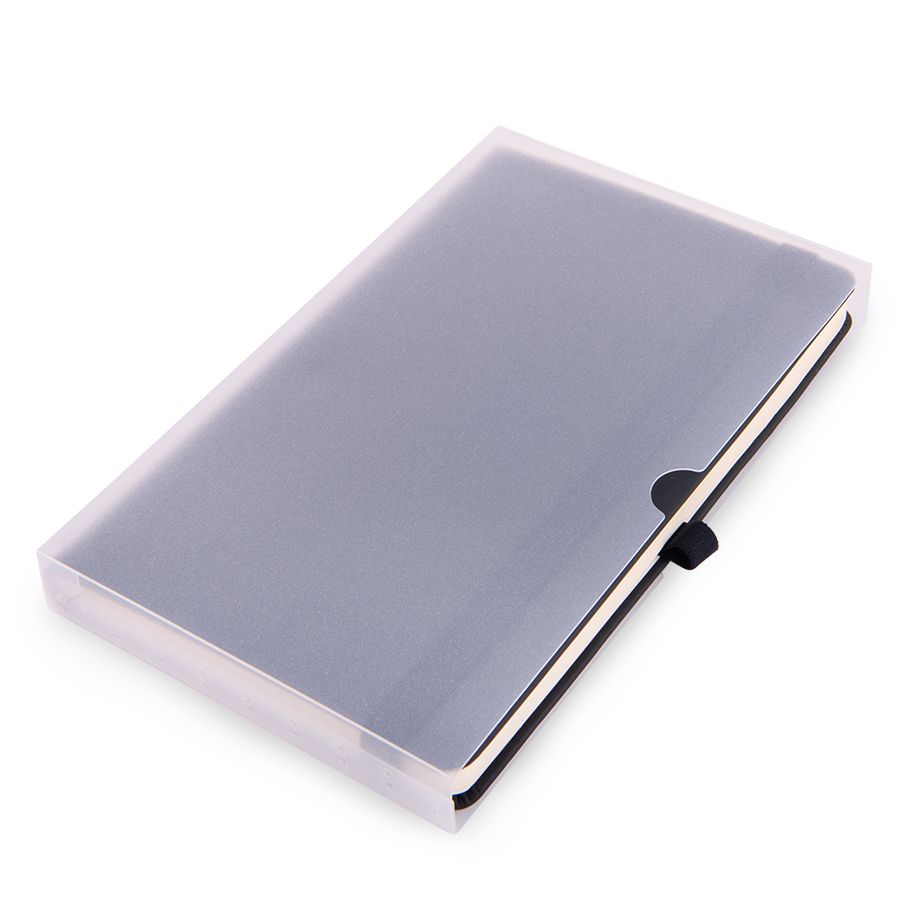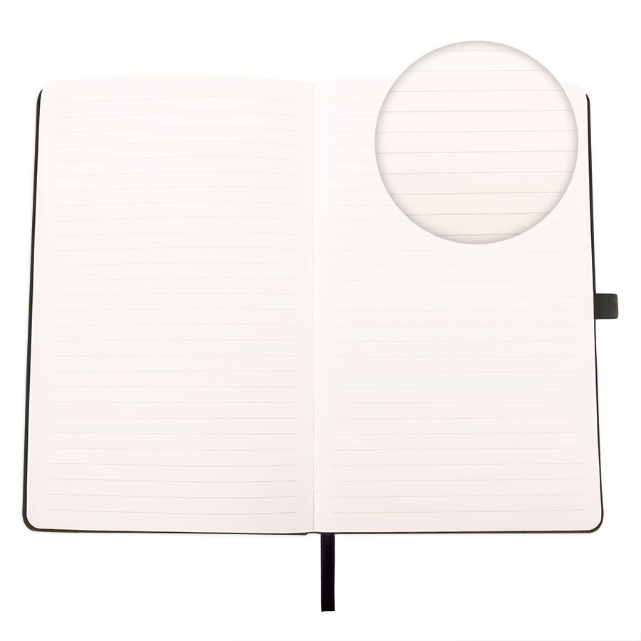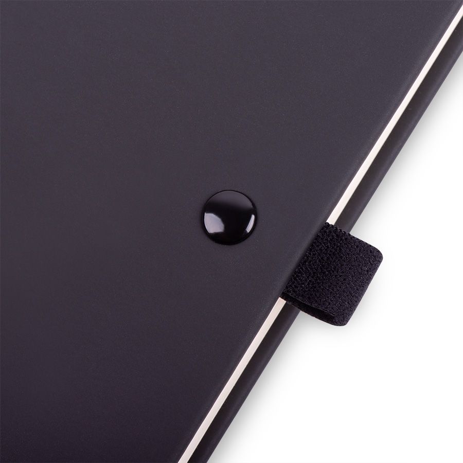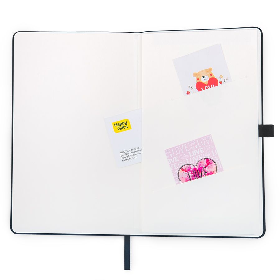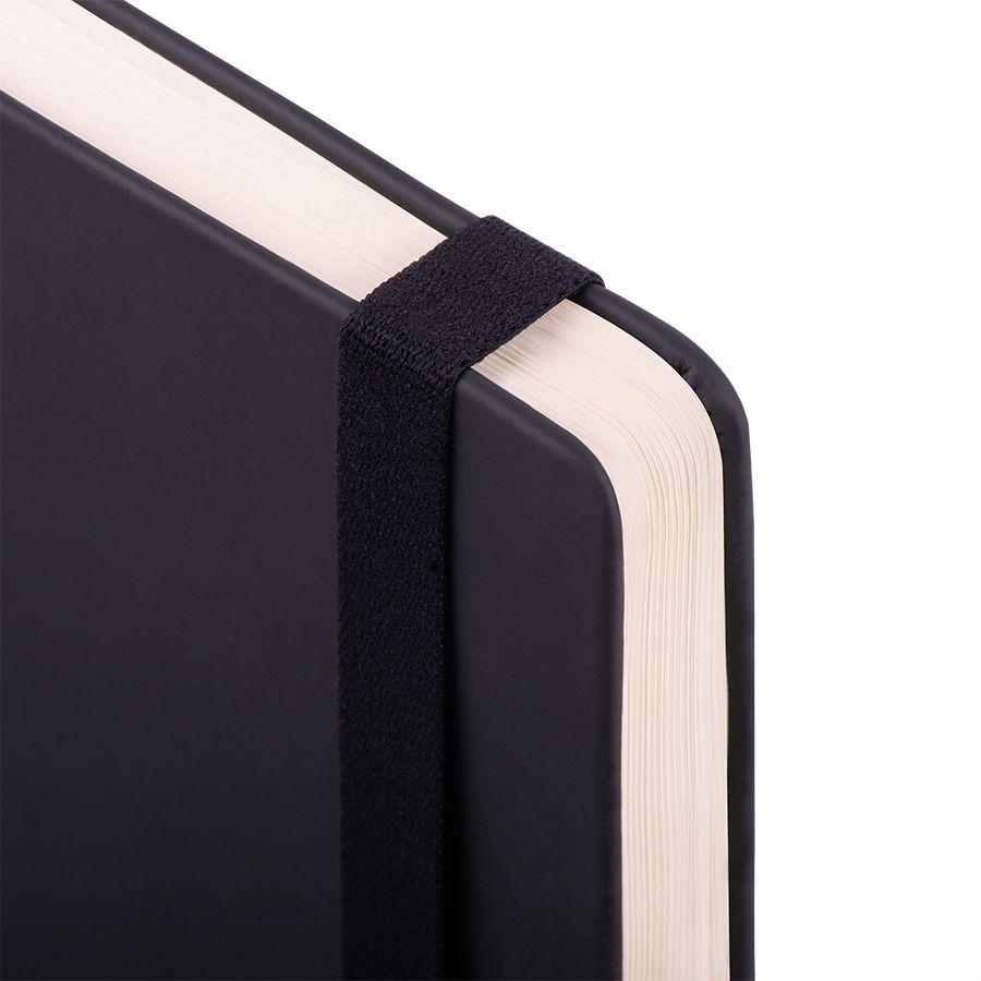 Самый популярный блокнот в твердой обложке, с эластичной резинкой, пенхолдером и ляссе в тон.