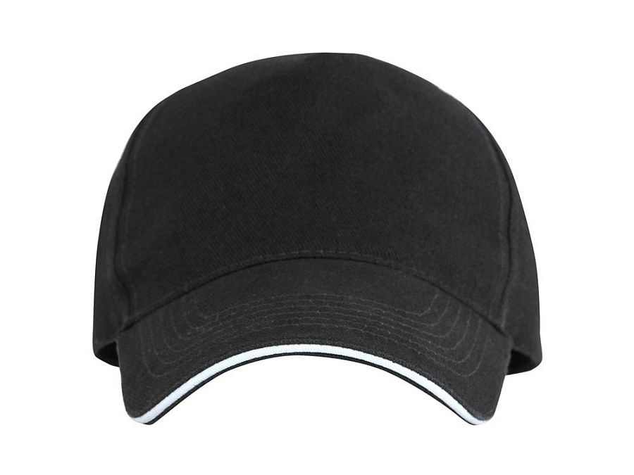 Бейсболка из 5 панелей с контрастным сэндвичем. Четыре вышитых вентиляционных люверса. Застежка на липучку.