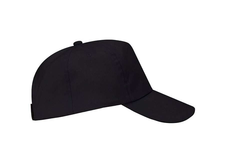 Бейсболка из 5 панелей, два вышитых вентиляционных люверса. Застежка на липучку.