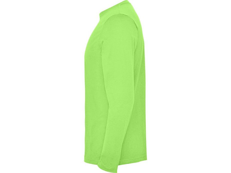 Детская футболка с длинным рукавом без швов. Горловина с двойной отстрочкой дополнительно укреплена по спинке тесьмой. Модель без манжет.