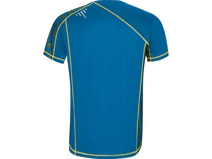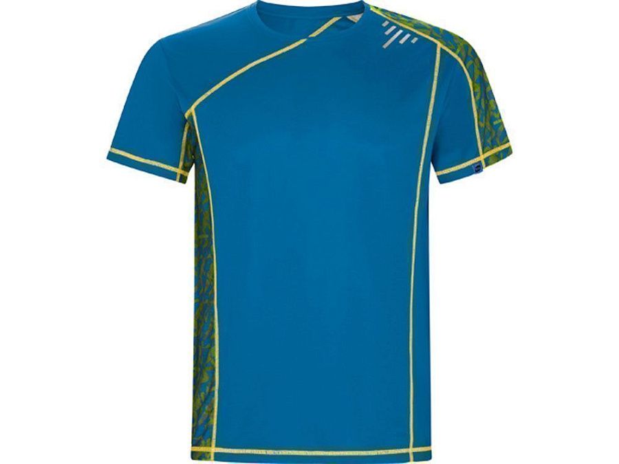 Спортивная футболка с коротким рукавом и принтованными вставками. Контрастные отстрочки плоским швом, светоотражающие элементы на полочке и спинке. Эко лейбл на рукаве.