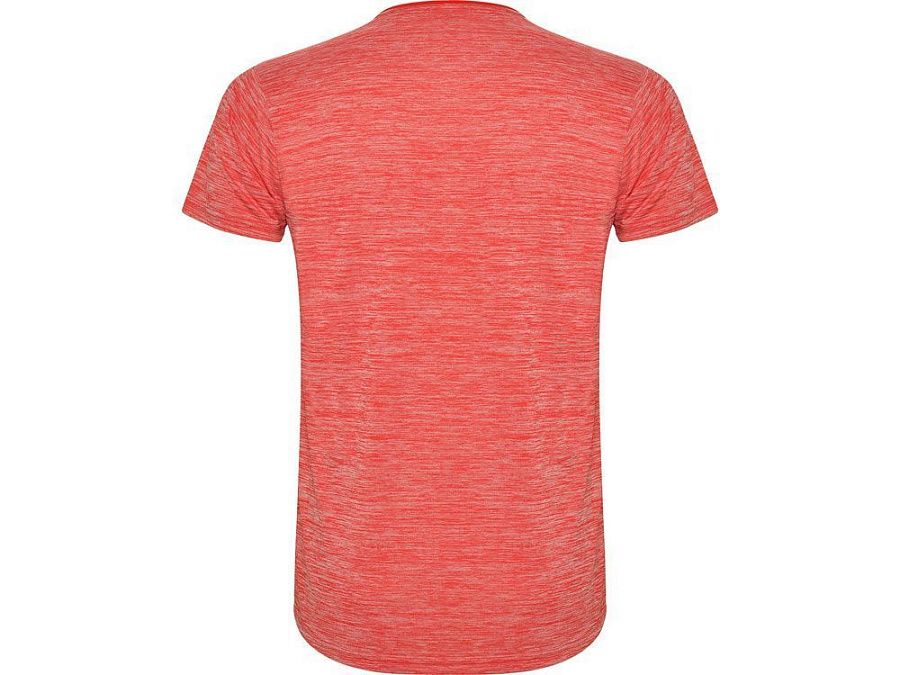 Футболка с коротким рукавом из технологического полотна. Круглый вырез горловины. Комбинация двух полиэстеровых полотен. Основное полотно на полочке со структурой, дополнительное полотно на спинке, рукавах и плечах с меланжевым эффектом. Задняя часть немного длиннее. Легко сохнущее дышащее полотно.