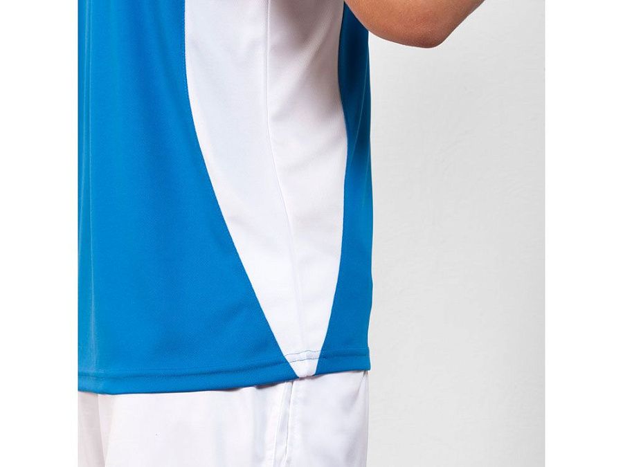 Спортивная футболка из технологического полотна и колорблок вставками. Круглый вырез горловины укреплен тесьмой. Контрастные вставки по бокам. Дышащее технологичное полотно - легко стирается и быстро сохнет.