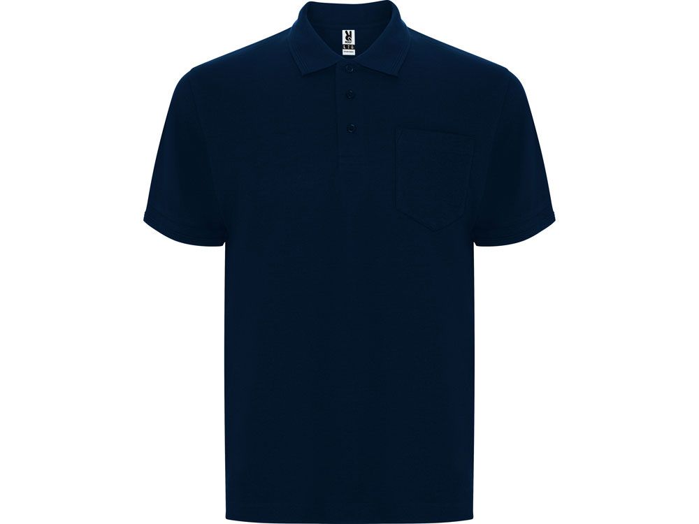 Рубашка поло с коротким рукавом и накладным карманом. Воротник и манжеты из риба 1х1 со структурными полосками по краю. Планка застегивается на три пуговицы. По горловине укрепляющая тесьма.